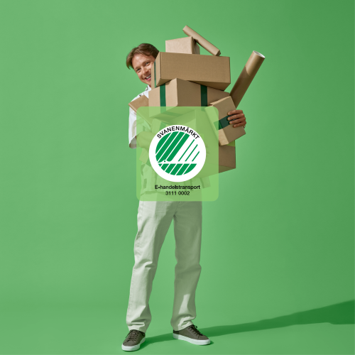 Våra leveranser till ombud och paketboxar är miljömärkta med Svanen - en av världens tuffaste miljömärkningar.